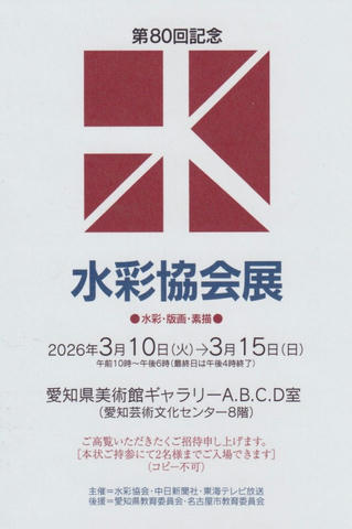 ■水彩協会展 3/10~3/15 10:00~18:00(最終日は16:00まで)愛知県美術館ギャラリー