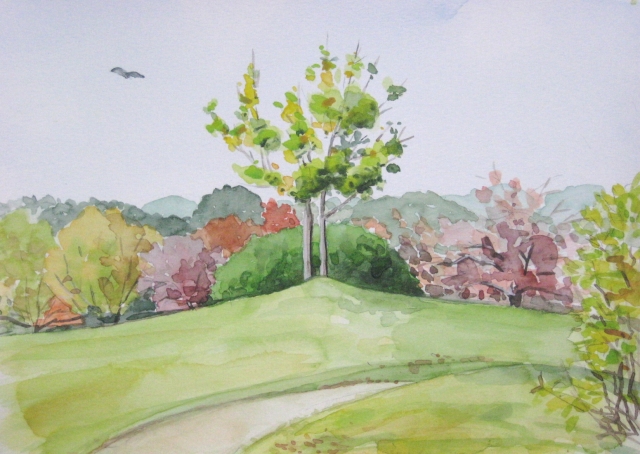 一羽の鳥(とんび?)が舞っているので穏やかな秋日和を感じさせます 細かく配慮されているのですね