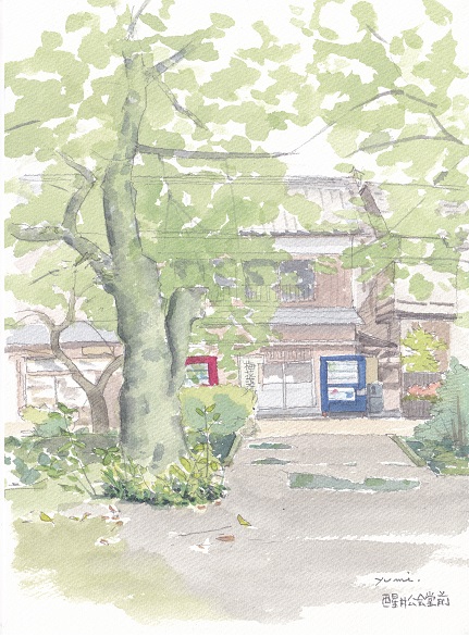 私たちもスケッチしましょうと外に出てみたら、相変わらずの雨、