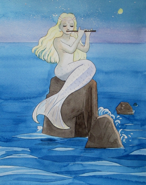 月夜にフルートを吹く人魚に魅惑され私は溺れるのも知らず海に入って行くのでした