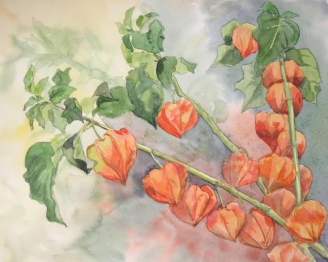 右下から3つに分かれる構図がほうずきのきれいさを表現していて、夏祭りのちょうちんのように見えて季節感を感じる素適な絵ですね!