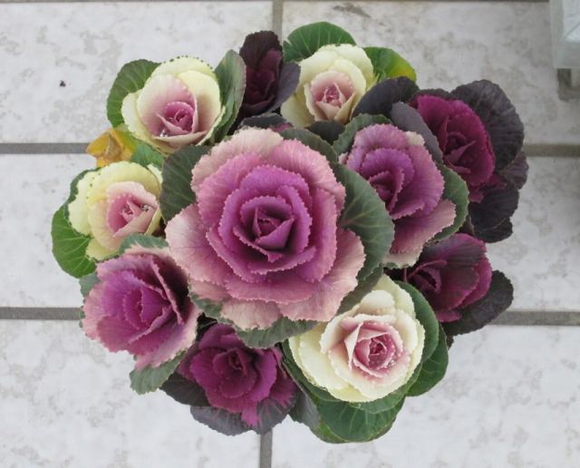 我が家の玄関の葉牡丹。(まだ掃除が終わっていない^^;)