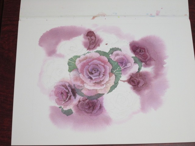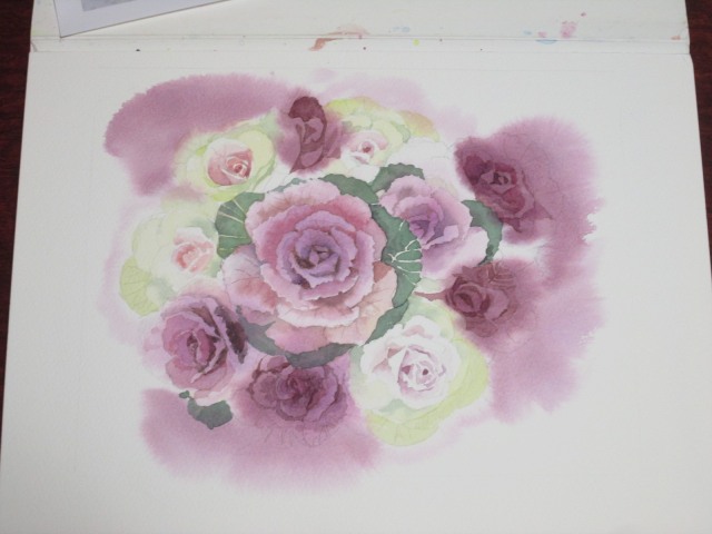 描き方はいつも迷いながら・・・まず、ファーストウォッシュ!