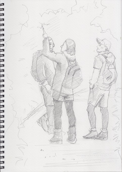 50号水張り成功おめでとうございます ピッシっと張った画面は気持ち良く描けますから成功間違いなしです 私も三人の方が物語が膨らんで良いと思います