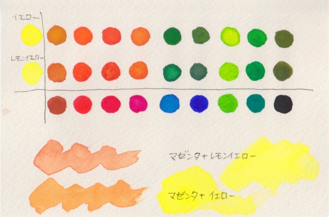 その違いを確認したい~そこですべての色に黄色を混ぜてみました。