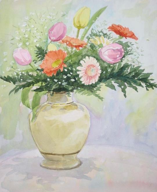 中心の薄いピンクのガーベラが上手く描けない(;ー_ー)
