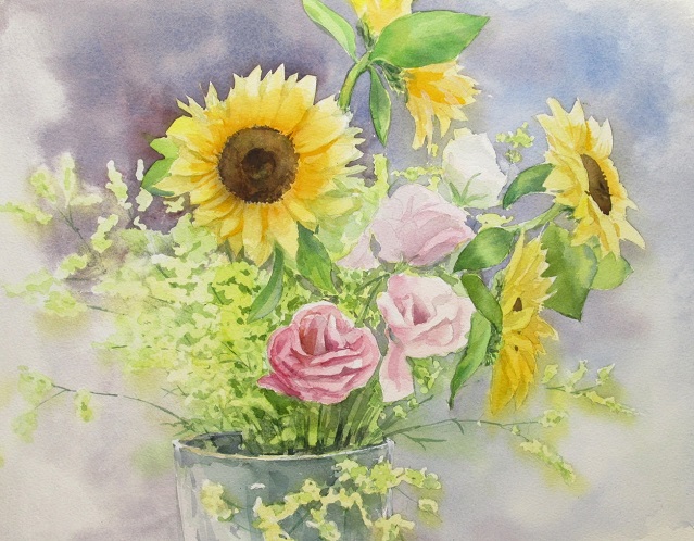 その上お盆なのにもう絵に励まれているようで感心します 花の絵は見た瞬間涼しさを頂きました 気持ちの良い絵で素敵です 何やら難しい技巧も使われているようで流石です アルシュ紙もyumiさんに合っている様に思います(yumiさんなら何を使おうと弘法筆を選ばずで