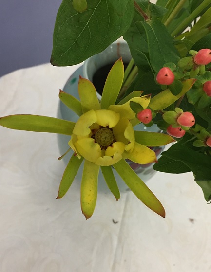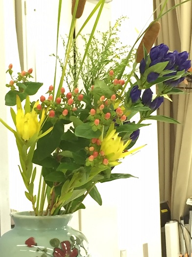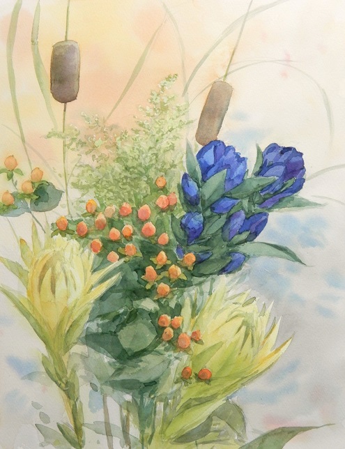 リンドウがしっかり描かれていて迫力がありますが後ろの細かい葉っぱの描き方にさらに感心しました