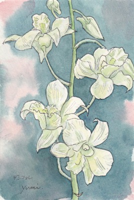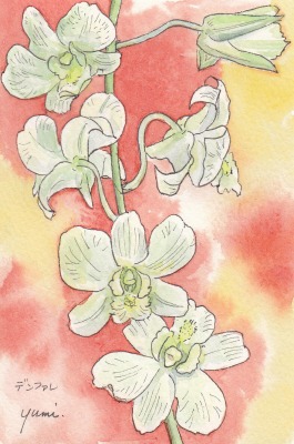 複雑な形の花なのに、いつもながらしっかりスケッチされているので、とても良い絵になっています このまま短冊にして飾りたい!