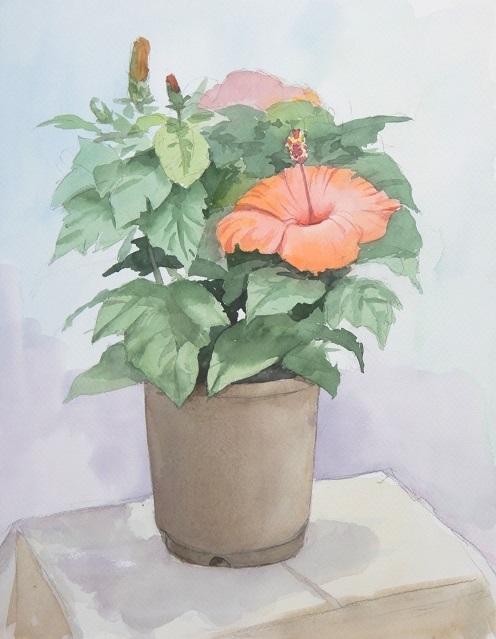 ハイビスカスが一日で散ってしまうとは知りませんでした 綺麗に咲いたらすぐに描かないと様子が変わってしまいますね