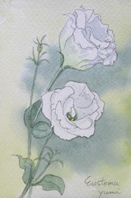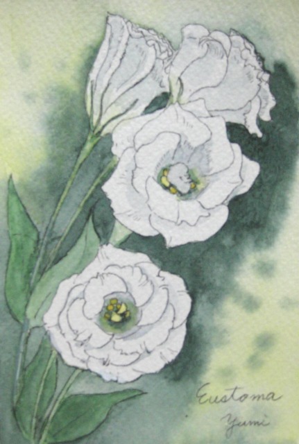 私ですと赤とか、青とか濃い色をそばに持ってこないと白が浮き出て来ないと思って、白い花だけ描くのは初めから敬遠するのに! まだ白く純情だった頃・・・もう思い出せません