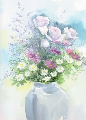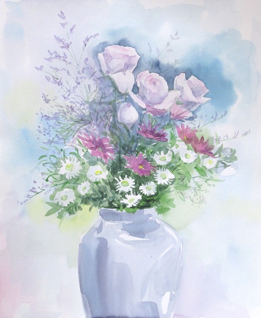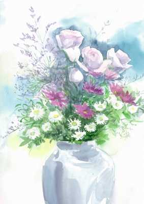花々ももちろん素敵に描けていますが、特に感心するのは細かな葉っぱの表現です 一枚一枚考えて描いていてはいくら時間があっても足りません yumiさんはきっと筆が勝手に動くのでしょう さっさと描いて実物の感じを見事に表現しています