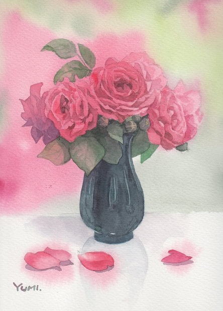 透明水彩てバラの美しさ封じ込めた名品と