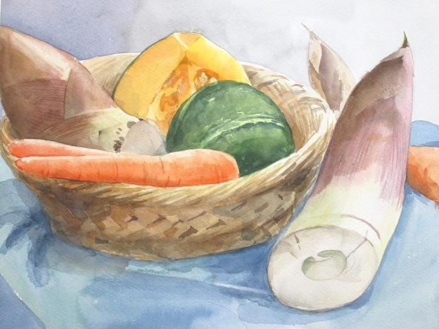 冬瓜と唐辛子を描いて、最後にバックを入れ仕上げました。