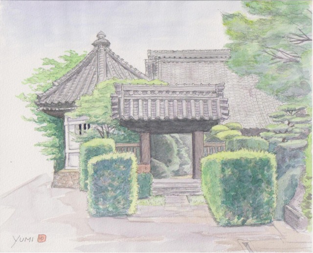 今回の絵は、前回の六角堂よりしっとりした感じで、Yumiさんの狙いどうりの出来栄えです。