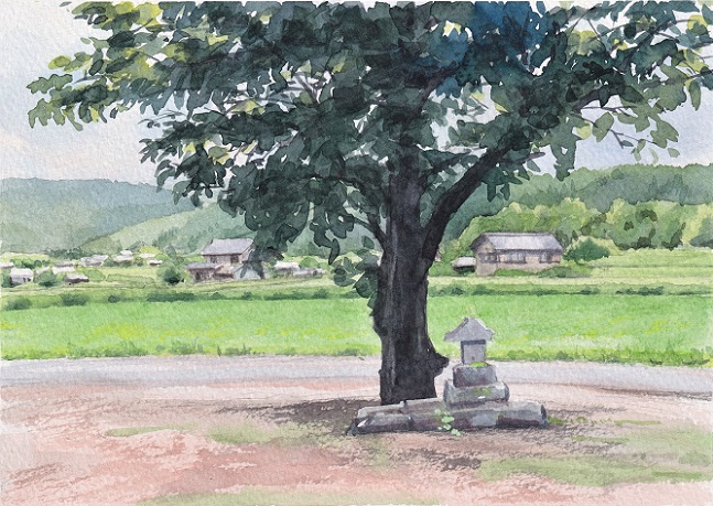 風景の描けない私の感想ですから気にしないで頂きたのですが、山の稜線、田んぼの線、道の線など皆横一線に並び過ぎている気がしますので奥の方の山の高さをもう少し高くしたらと思いました