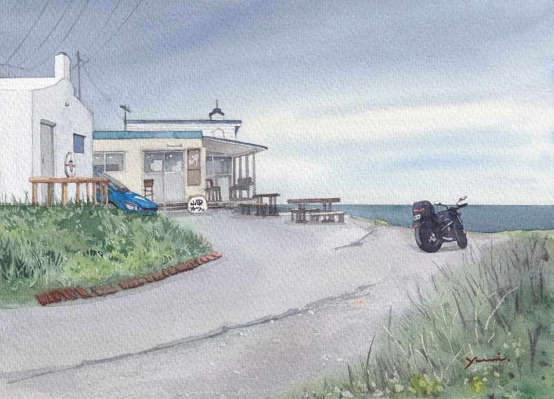 完成した絵ですが矢張り計算して手を加えられているだけにきっちりとした気持ちの良い絵になっています 穏やかな気持ちになりますし深呼吸したいような晴れやかな気持ちになります この何処かに灯台があったら更にyumiさんらしい絵になったでしょう