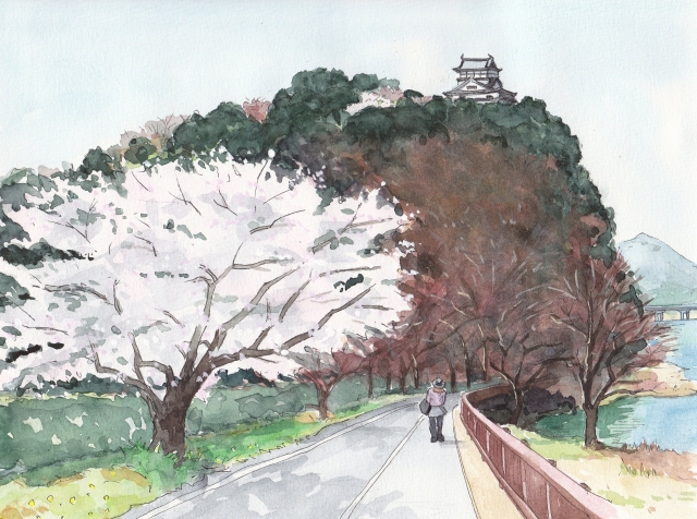 勿論桜だけでなくお城も森もそしてさりげなく配置された遠景もすべて見事です