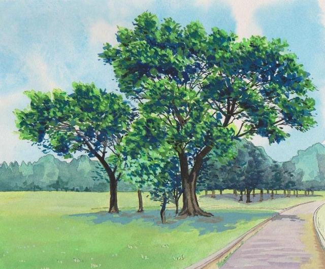 油絵に負けない色の厚み ガッシュだからでしょうか? いややっぱりYumiさんの絵の力に他なりません 樹の葉っぱに生命力があります