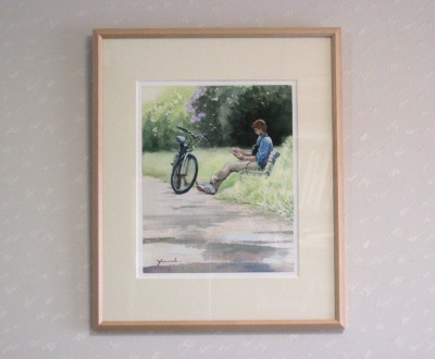 絵の余白を見せることにしました。余白が白いのでマットはクリームに。