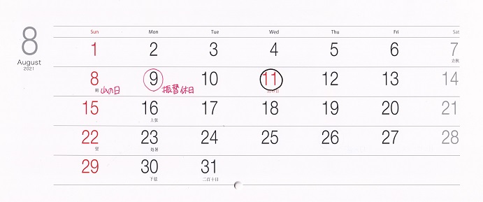 ■ 2021年カレンダーについて