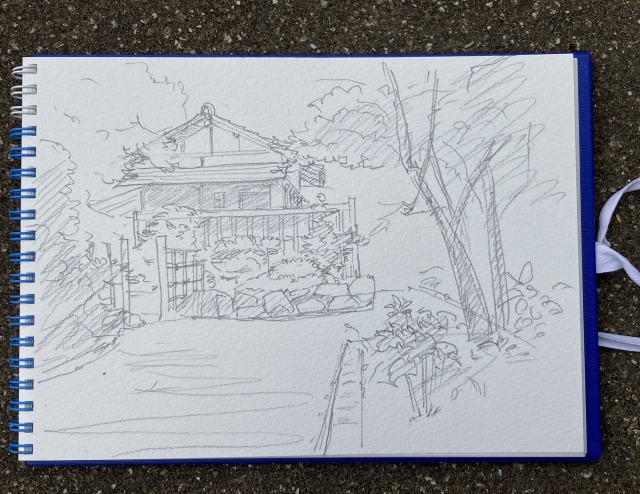 このスケッチは古びた家屋の感じがとても趣があります きっと短時間で描かれたでしょうに細かい所もきっちりと描かれていて感心します