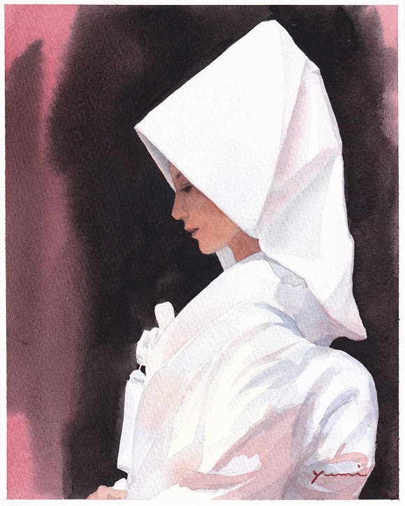 この絵は白鳥庭園で偶然出会った結婚式です。