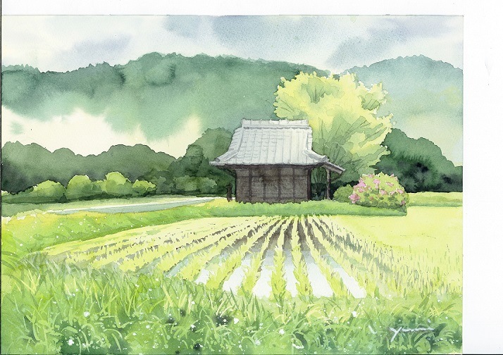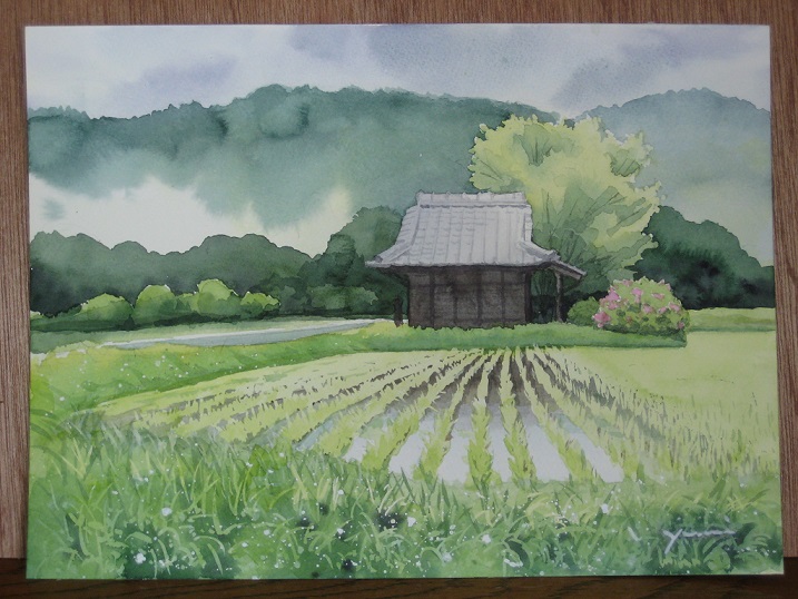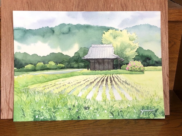 絵は去年6月に行った岩村のお堂の絵で、大きさはF4です。