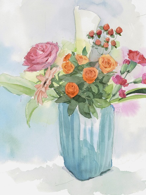 一つ一つ表情を変えておられることです もう気を付けなくても自然とそのように筆が進むのでしょう また横から見た花は手前に来る花弁が難しいのにとても上手く描けているので素敵です さらに葉っぱなど一筆できりっと描き終えてしまわれるので羨ましいです