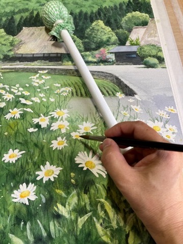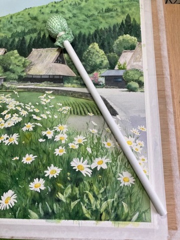 棒の下の部分は絵の無い所に置き(紙に跡が付くと嫌なので)
