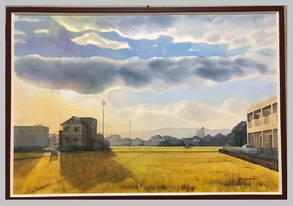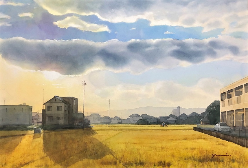 空の雲の描き方はこれまでのyumiさんとは別人です 少し荒々しさのある雲です 稲穂が実ったのに
