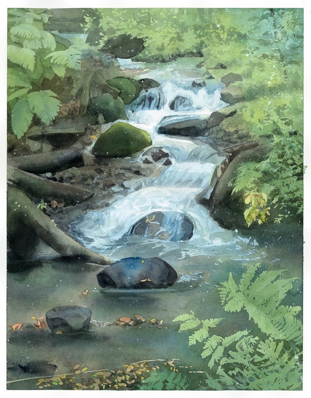 水の表現は言うまでもなく素敵ですが、私は倒木や岩肌の深みのある枯れた色合いも好きです