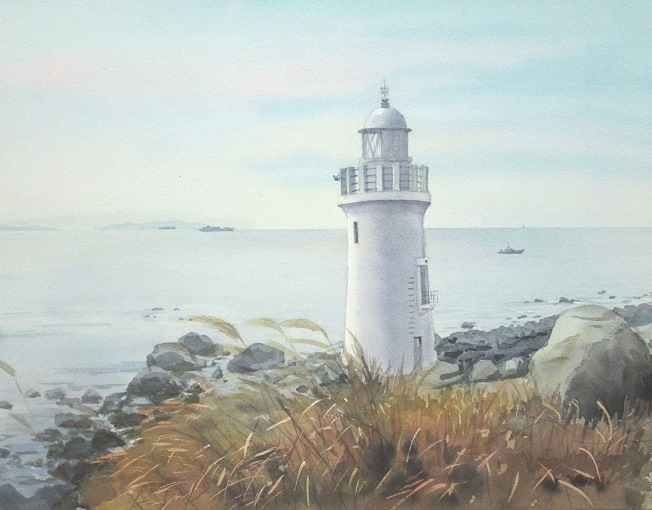 広さと静けさ 驚くほど幾何的に精密な灯台 青いグレーだけのシンプルさに