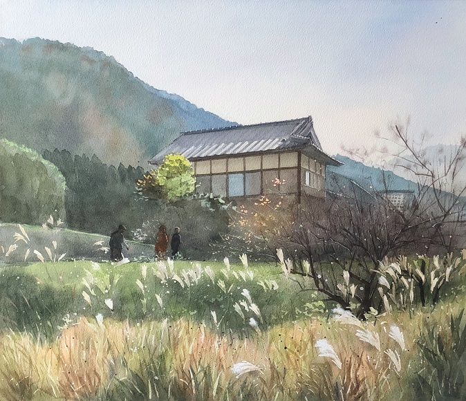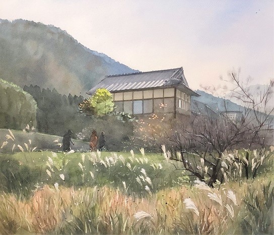 ススキや木々の感じなど秋のうら寂しさを感じます yumiさんには少し気になるところがおありのようですが修正できませんか? 私の勝手な希望ですが人物を明るくしていただけませんでしょうか