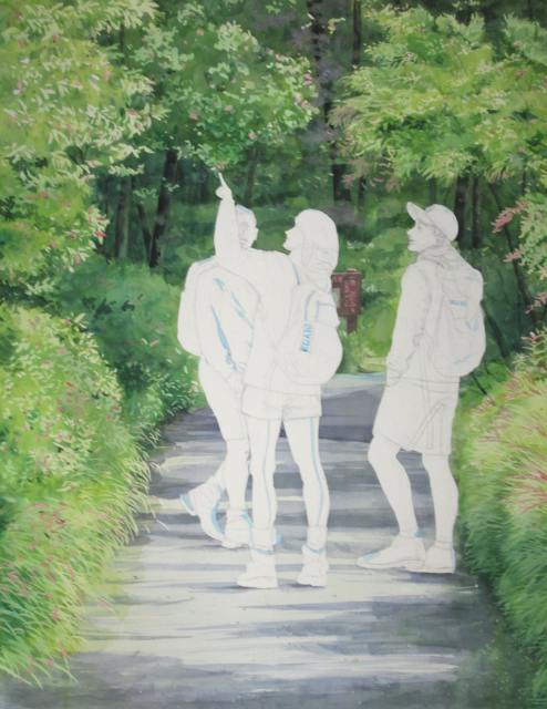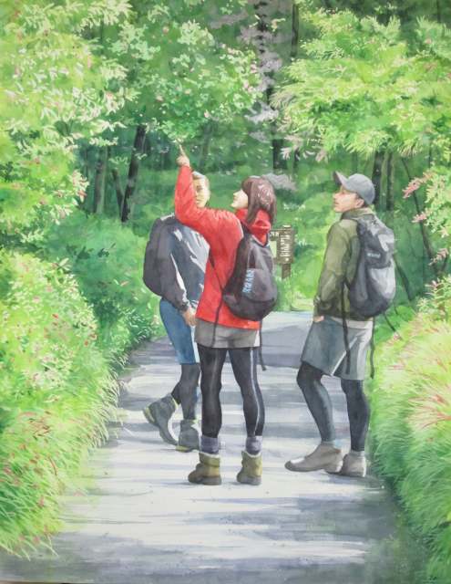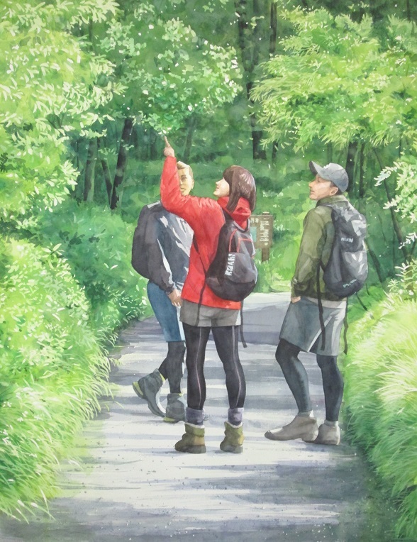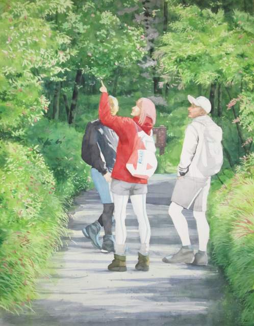 新緑の中で3人が立体的に見えます