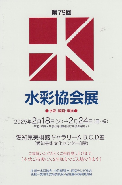 ■水彩協会展 3/10~3/15 10:00~18:00(最終日は16:00まで)愛知県美術館ギャラリー
